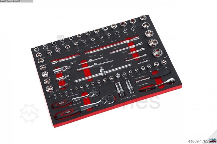 3 набора торцевых ключей: 1/4" от 4 до 14 мм, 3/8" от 6 до 22 мм и Torx от
