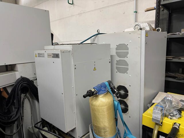 Mitsubishi BA 8 W 30 BV - двухпроволочный электроэрозионный станок, год выпуска 2012, управление CNC-PC, перемещения по осям X/Y/Z 320/250/220 мм, максимальные размеры заготовки 700/550/215 мм, максимальный вес заготовки 500 кг, автоматическая настройка проволоки, 48-позиционные индексируемые токовые контакты, встроенный измельчитель проволоки, Ethernet, RS 232, охладительная установка с компрессором, автоматическое регулирование проводимости.