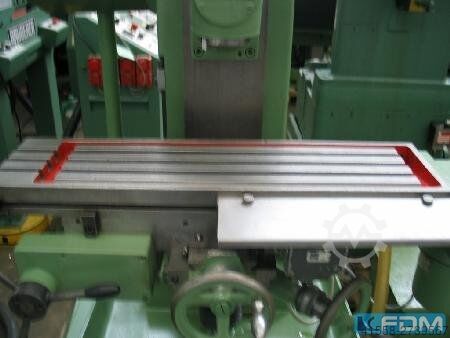 Универсальный фрезерный станок с вертикальной головкой, поворачивающейся на +/- 90°, двухполюсным сменным приводом шпинделя с правым и левым вращением. Станок оснащен маховиками noius для всех 3 осей + быстрая регулировка с помощью турникета в направлении x, электрическая подача в направлении x, ступени подачи регулируются с помощью сменных шестерен, верхняя балка для горизонтального фрезерования 3-кратный кулачковый переключатель в направлении x для программы последовательности, аварийная остановка на панели управления и главный выключатель.