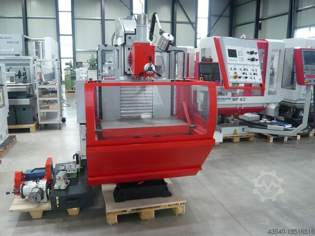 Предлагается инструментальный фрезерный станок Emco C40 Linear с системой управления перемещением. Данный универсальный фрезерный станок находится в почти новом состоянии. Происходит из государственного предприятия, где был мало использован. Очень простое в использовании управление. Кроме того, станок оснащён гидрозажимом как в вертикальном, так и в горизонтальном положении. Перевод станка из вертикального в горизонтальное исполнение осуществляется очень просто, за счёт откидывания вертикальной головки. Станок Emco прошёл у нас как механическую, так и электрическую проверку. Вы можете лично осмотреть и испытать станок под напряжением на нашем складе.