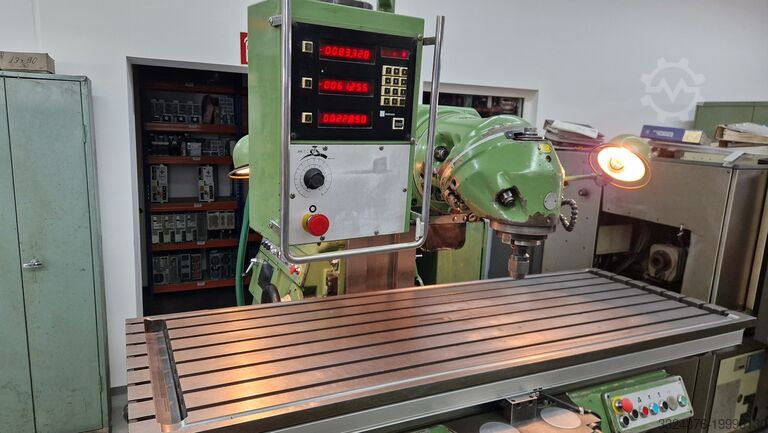 Предлагается очень прочный фрезерный станок с цифровой индикацией Heidenhain по всем 3 осям и плавной подачей через потенциометр. Станок находится в хорошем рабочем состоянии с возрастными следами эксплуатации. Все остальные детали смотрите на фото.