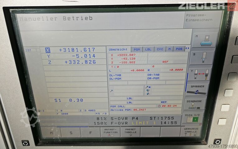 - Управление траекторией Heidenhain iTNC 530, панель управления можно перемещать по всей длине обработки.