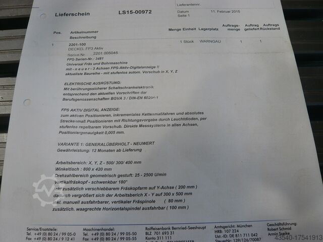 Предлагается универсальный фрезерный станок Deckel FP3 в отличном состоянии. FP3 был капитально отремонтирован компанией FPS в 2015 году и с тех пор использовался лишь немного. У станка небольшой люфт кривошипа, все шпиндели легко перемещаются. На этой новой модели FP3 подача бесступенчато регулируется по трем осям, а также имеется быстрый траверс по каждой оси. Важным преимуществом является активный 3-осевой цифровой дисплей. С помощью линейного управления Heidenhain можно вводить размеры, которые станок автоматически выполняет. Произведена замена масла. Проведена механическая и электрическая проверка. Цифровой дисплей Heidenhain облегчает работу и делает ее еще более точной. Воспользуйтесь возможностью проверить и опробовать этот станок на месте. Машина доступна немедленно.