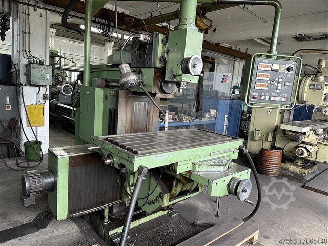 Консольная конструкция с наклонным, откидным и поворотным столом, а также регулируемой вертикальной фрезерной головкой.