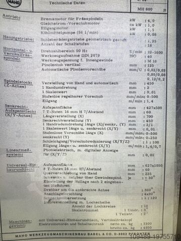Инструментальный фрезерный станок MAHO MH 800