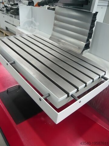 Универсальный фрезерный станок находится в состоянии, близком к новому. Очень простое и интуитивно понятное управление. Машина оснащена гидравлическим зажимом как в вертикальном, так и в горизонтальном положении. Перевод с вертикального на горизонтальный режим выполняется очень легко за счет откидывающейся вертикальной головы. Направляющие регулярно смазываются централизованной системой смазки. Станок прошел у нас механическую и электрическую проверку. Вы можете осмотреть и опробовать Kunzmann под напряжением на нашем складе.