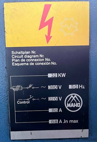 В наличии имеется универсальный фрезерный станок с ЧПУ Maho. Перемещение X/Y/Z: 1000 мм/560 мм/800 мм, размеры стола X/Y: 1150 мм/800 мм, держатель инструмента: ISO50, скорость: 2000 об/мин, подача: 3 м/мин, ускоренный ход: 6 м/мин, макс. нагрузка на стол: 800 кг. Габариты машины X/Y/Z: приблизительно 4600 мм/2300 мм/3000 мм, вес: приблизительно 7500 кг. Система контроля была пересмотрена и обновлена в 2007 году. Возможен выездной осмотр.