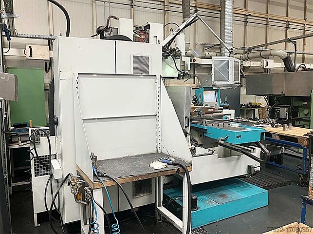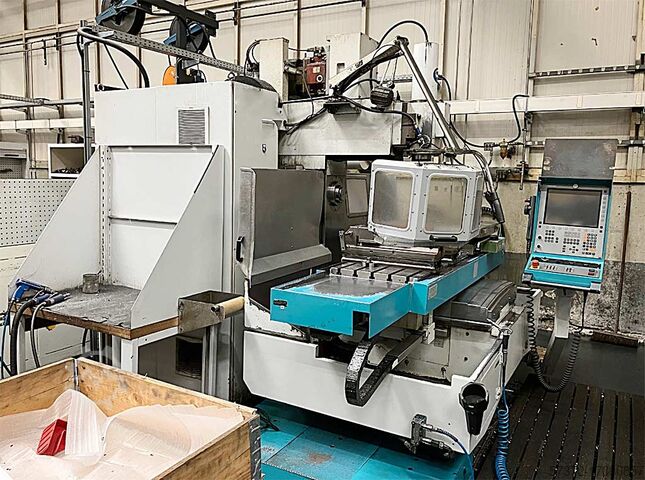 Диаметр горизонтального шпинделя: 100 мм, скорость вращения горизонтального шпинделя: 3600 об/мин, мощность горизонтального шпинделя: 25 кВт, крутящий момент горизонтального шпинделя: 920 Нм, диапазон поворота вертикального фрезерного шпинделя: +/-90°, диаметр вертикального шпинделя: 90 мм, скорость вращения вертикального шпинделя: 3600 об/мин, мощность вертикального шпинделя: 25 кВт, крутящий момент вертикального шпинделя: 920 Нм. Траектория X/Y/Z: 1500мм/500мм/450мм, подача X/Y/Z: 4000мм/мин, усилие подачи X/Y/Z: 12кН/12кН/15кН, быстрый траверс X/Y/Z: 15м/10м/10м/мин. Размеры стола X/Y: 1800мм/500мм, количество Т-образных пазов: 5, центральные пазы: 18H7, зажимные пазы: 18H9, межцентровое расстояние: 100мм, грузоподъемность стола: 2000кг. Расстояние между столом горизонтального шпинделя: 450 мм, расстояние между нижней кромкой контрдержателя горизонтального шпинделя: 345 мм, расстояние между нижней кромкой стола вертикального шпинделя: 350 мм-800 мм, расстояние между центрами вертикального шпинделя и щеткой колонны: 100 мм-600 мм. Размеры станка X/Y/Z: около 3400мм/2900мм/2600мм, вес: около 5600кг, управление: Heidenhain, часы работы: 61440ч. Возможен осмотр на месте.