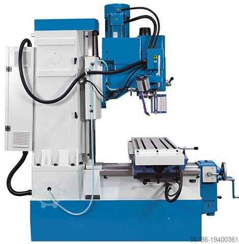 KB 1400 — это высококачественный универсальный фрезерный станок из категории станков с неподвижной станиной, который отличается широкими направляющими и высокой приводной мощностью. Эта прочная универсальная фрезерная машина с неподвижной станиной идеально подходит для машиностроения и производства оборудования и обеспечивает впечатляющую производительность при обработке металла. Тяжёлый вертикальный фрезерный головка позволяет осуществлять наклон вправо и влево, а ручная пиноль и бесступенчатое регулирование скорости шпинделя гарантируют высокую точность обработки. Перемещения по осям X и Y регулируются надёжной коробкой передач. Благодаря инновационной технологии, при которой в оси Z перемещается фрезерная головка, а не стол станка, достигаются повышенная стабильность и снижение вибраций. Кроме того, станок оснащён 3-осевой цифровой индикацией положения для повышения безопасности производства и обеспечения удобства эксплуатации. Вы можете заказать KB 1400 онлайн и воспользоваться её большим рабочим пространством, бесступенчатой регулировкой подачи и широкой стандартной комплектацией.