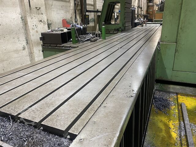 Станина-фрезер Mecof, подвижная колонна, стол 9 м x 2,2 м, угловая плита 1 м x 2,5 x 1,2, два вспомогательных стола 1 м x 1,5 м. Система управления Heidenhain 426.