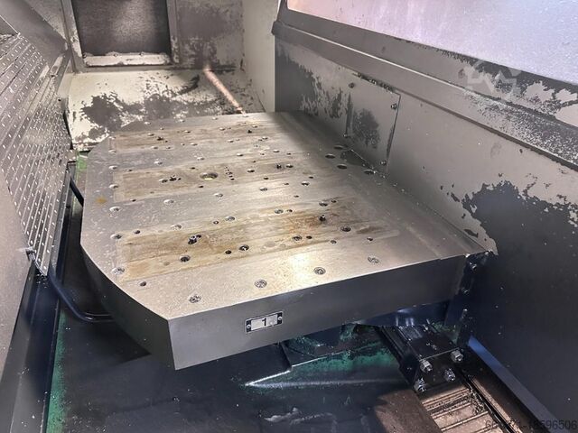 Вертикальный обрабатывающий центр Doosan VC510 с двумя паллетами и ЧПУ Doosan Fanuc серии i, размер стола 2 x 860 x 570 мм, максимальная высота заготовки 520 мм, скорость вращения шпинделя 10 000 об/мин, конус шпинделя BT40, 40 ATC инструмента, ход по оси X 762 мм, ход по оси Y 516 мм, ход по оси Z 570 мм, насосы и оборудование WPB 10-1000 Hydrajet система охлаждения высокого давления, охладитель Kaukan, транспортер стружки LNS Turbo HB. Серийный номер MV 0061-000242 (2013) Вес станка 9500 кг, различные инструменты для шпинделя BT40