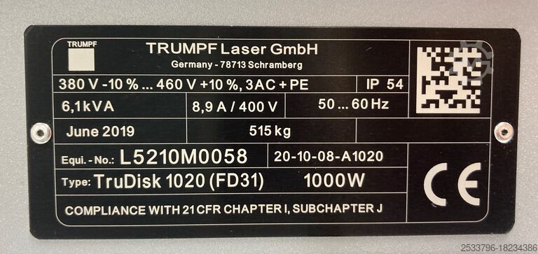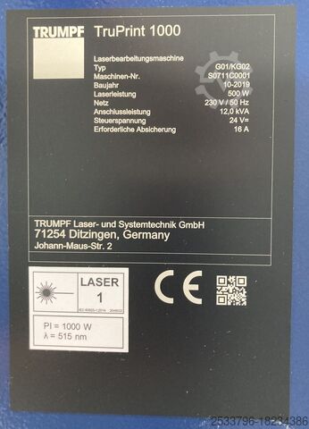 TRUMPF TruPrint1000: серийный номер: S0711C001, год 2019, установка декабрь 2019 г.,