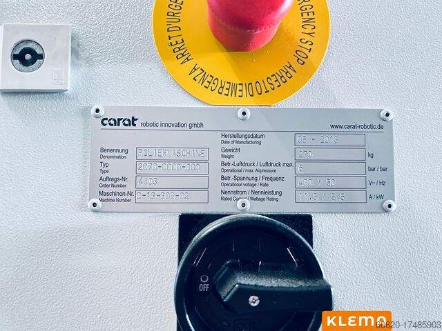 Воспользуйтесь возможностью приобрести высококачественную подержанную шлифовально-полировальную станцию Carat: Этот комплект состоит из шкафа управления и двух прецизионных полировальных машин, оснащенных роботизированным соединением для максимальной эффективности. Идеально подходит для профессионального применения в промышленности.