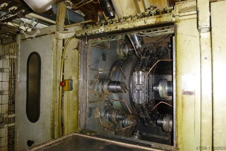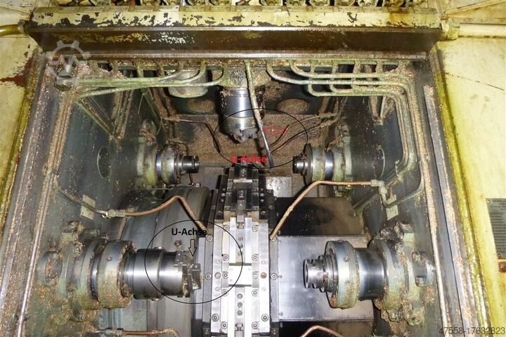 - справа 2х сверлильно-фрезерных шпинделя и 2х резьбонарезных шпинделя и 1х U-ось, а также радиальные 2х резьбонарезных шпинделя подвижные, 2х сверлильно-фрезерных шпинделя из которых один подвижный и 1х U-ось подвижная