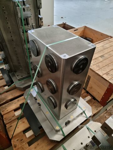 Прочный станок-скоба для использования в горизонтальном обрабатывающем центре. Оснащён проверенной системой быстрой смены UNILOCK, тип SAD 138 UL500.242. В комплекте прилагается зажимная плита (630 x 630 мм), обеспечивающая гибкие возможности крепления заготовок.