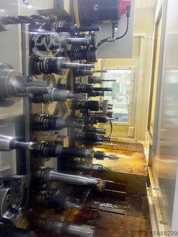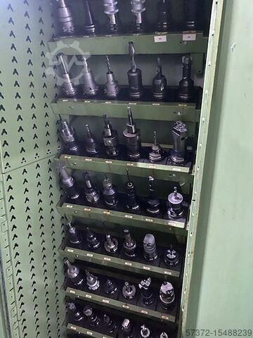 Горизонтальный 3-осевой обрабатывающий центр с примерно 150 дополнительными инструментами. Инструментальный магазин SK40: 61 место. Траектории перемещения X/Y/Z: 600мм/580мм/580мм, максимальный размер инструмента: 400мм x 400мм, максимальный вес инструмента: 400кг. Мощность: 35-12000 об/мин, скорость траверсы X/Y/Z: 50 м/мин, скорость подачи: 1-50000 мм/мин. Размеры X/Y/Z: около 4000мм/3700мм/2900мм, вес: около 400кг. Время работы: 73 974 ч, время обработки: 25 714 ч, время резки: 21 591 ч. Возможна поставка шкафов для инструментов. Имеется документация.