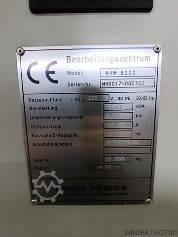 Новый горизонтальный обрабатывающий центр Doosan типа NHP 8000 с шкафом управления Fanuc типа 31i