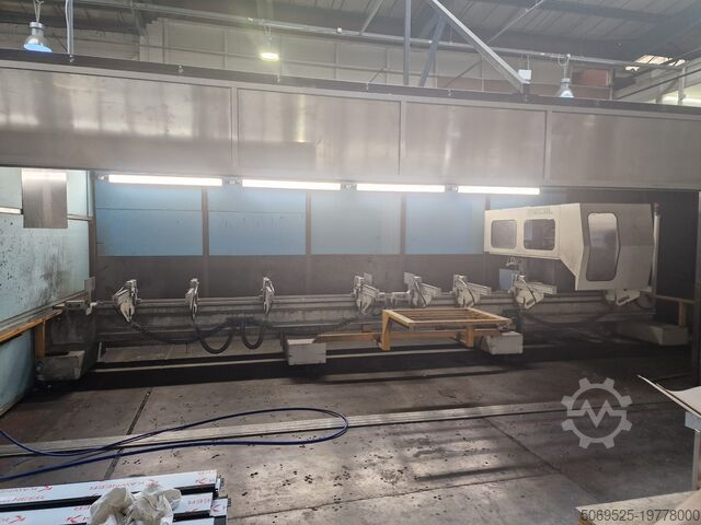 4-осевой обрабатывающий центр длиной 7,4 м продаётся на запчасти или под восстановление. Ход по оси X: 7400 мм, по оси Y: 1460 мм, по оси Z: 620 мм, ось A: +/- 90°, мощность электрошпинделя: 5,5 кВт.