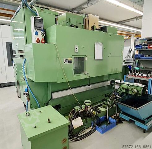 Траектория перемещения X/Y/Z: 400мм/300мм/495мм, расстояние до центра стола шпинделя: 25мм-325мм, расстояние до носа стола шпинделя: 125мм-620мм, быстрый ход: 24м/мин, скорость подачи: 5м/мин, тип шпинделя: ШВП, диаметр шпинделя: 36мм, скорость: 6000 об/мин, мощность шпинделя: 5.5кВт, крепление шпинделя: BT40. Позиций инструмента: 30, время смены инструмента: 2,5 с, время зажима: 7 с, макс. диаметр/длина инструмента: 110 мм/250 мм, макс. вес инструмента: 8 кг. Размеры стола X/Y: 315 мм/315 мм, угол наклона стола: 7,5°, усилие зажима стола: 3400 кг, макс. вес заготовки: 150 кг. Размеры X/Y: ок. 1900мм/2300мм, вес: ок. 4500кг, управление: Fanuc 0-M, часы работы: 732ч, счетчик деталей: 172776. Включая систему смазки и магазин инструментов на 30 мест. Имеется документация. Возможен осмотр на месте.