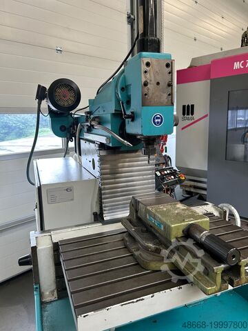 Вертикальная пиноль: примерно 90 мм вылета; дополнительно вертикальная фрезерная головка может перемещаться по суппорту шпинделя.