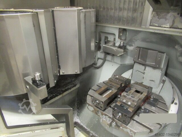 Maho DUM 50 evolution / 5 осей, год выпуска 2002, система управления Heidenhain TNC 426 PB, перемещения X/Y/Z 500/420/380 мм, 2-осевой NC поворотно-наклонный стол, ось вращения A 360.000 x 0,001°, ось наклона B 0 - +108°, электронное ручное колесо, 3D датчик Renishaw, измерение инструмента, транспортер стружки, скорость шпинделя до 18 000 об/мин, магазин смены инструмента на 60 позиций, посадка SK 40,