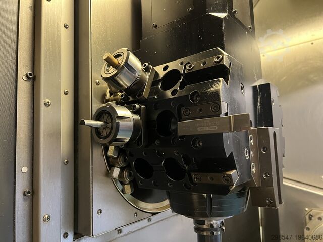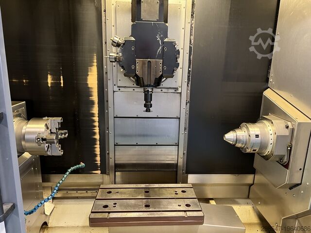 Возможна работа как токарного станка с прутковым материалом либо как 5-осевого непрерывного — одновременного фрезерного центра (также оснащённого столом с Т-образными пазами).