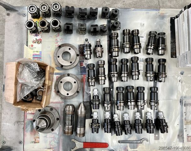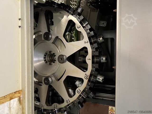 Инструменты для токарных работ на наклоняемой головке: 18 шт. (по 9 с каждой стороны) плюс 1 резец; также оснащён фиксированным столом 380x280 мм с T-образными пазами для работы как обрабатывающий центр; общий вес 6 800 кг.
