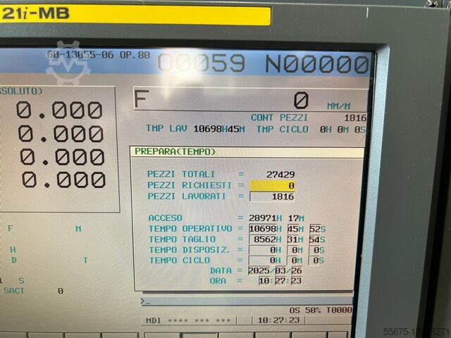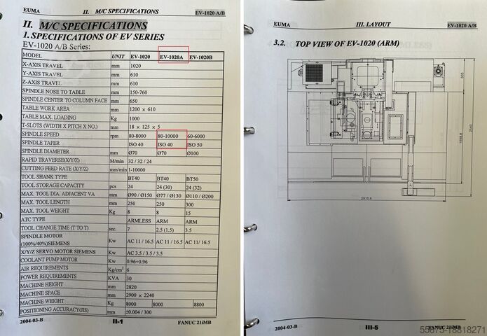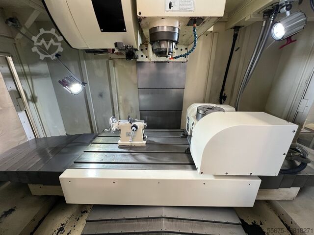 Б/у 5-осевой обрабатывающий центр EUMA SPINNER EV-1020A представляет собой станок среднего размера с крестообразной конструкцией стола на линейных направляющих, с автоматическим устройством смены инструмента (случайным со сменным рычагом) на 24 позиции; Ходы x 1020, y 610, z 610 мм, ЧПУ FANUC 21i-MB, шпиндель ISO 40 при 10 000 об/мин; год постройки 2005, соответствует нормам CE.