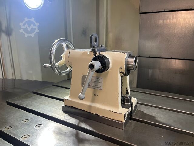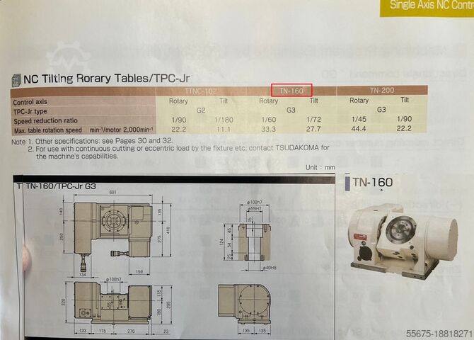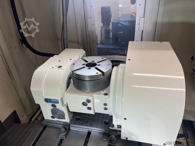 Станок оснащен 4/5-осевым поворотно-наклонным столом TSUDAKOMA TN-160 с плитой 200 мм, где 4-я ось (вращение) непрерывно контролируется ЧПУ станка, а 5-я ось (наклон) позиционируется независимым контроллером TPC-jr.