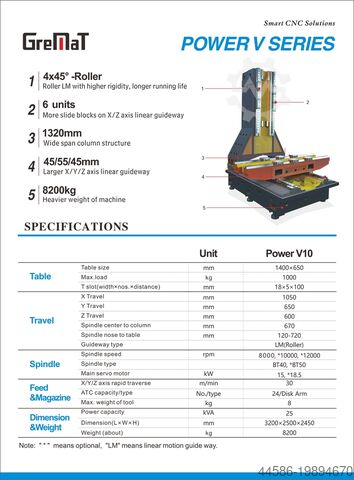 Power V10 из серии POWER V от GreMaT – это высокоточный и устойчивый CNC-обрабатывающий центр, разработанный для самых сложных задач по обработке металла. Благодаря широкой станины, усиленным линейным направляющим и мощной шпиндельной технологии, он является идеальным решением для прецизионного и экономичного производства.