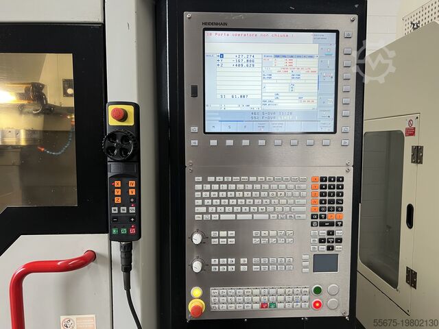 Высокоскоростной и высокоточный вертикальный обрабатывающий центр с 3 осями, оснащённый ЧПУ HEIDENHAIN iTNC 530 и полностью укомплектованный: линейки HEIDENHAIN по 3 осям, беспроводной щуп BLUM TC-50 для измерения деталей, лазерный инструментальный прегрив (новый, ещё в упаковке) BLUM NT-A2, электронный маховик HR-410, мотор-шпиндель KESSLER 12.000 об/мин, мощностью 25 кВт, инструментальный конус ISO 40, автоматический сменщик инструмента на 30 позиций, охлаждение высокой давления через шпиндель 20 бар и транспортер стружки.