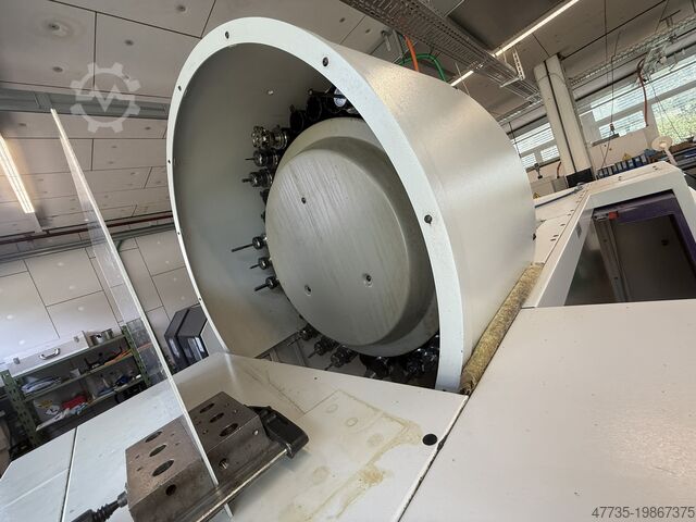 Детали, показанные вручную на видео или фото, не входят в комплект. 30 позиций инструмента в инструментальном магазине. Охлаждение через шпиндель 18 бар.