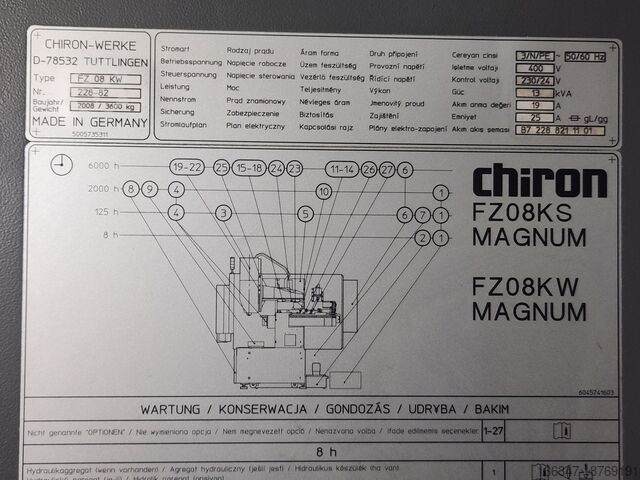 Продается высокоскоростной вертикальный обрабатывающий центр с ЧПУ Chiron FZ 08W Magnum High Speed, выпущенный в 2009 году и оснащенный системой управления Siemens 840D. Станок находится в Армилье, Испания, и находится в идеальном рабочем состоянии — идеально подходит для высокоточной обработки и серийного производства.