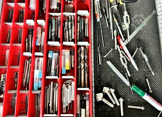 FEHLMANN PICOMAX 55 CNC вертикальный обрабатывающий центр с ручным маховиком и большим количеством инструментов.
