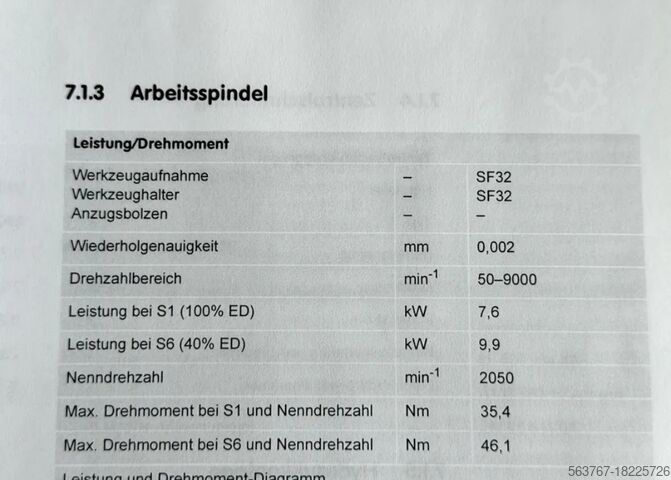 Мощность шпинделя (S6, 40%): 9,9 кВт