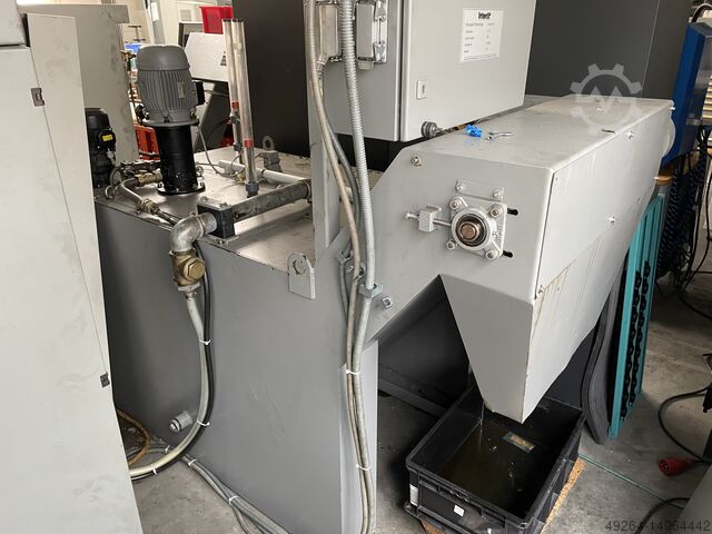 5-осевой обрабатывающий центр, производитель: DECKEL MAHO, тип: DMU 70 V, год выпуска: 1996, серийный номер: 570035, ход X/Y/Z): 710/520/520 мм, управление HEIDENHAIN, макс. скорость шпинделя 12 000 об/мин, 60-позиционный сменщик инструмента, компактная система фильтрации INTERLIT SUK200/900, год выпуска: 1997, объем заполнения 900 л, площадь фильтрации 0,2 м³, транспортер стружки, внутренний подвод СОЖ