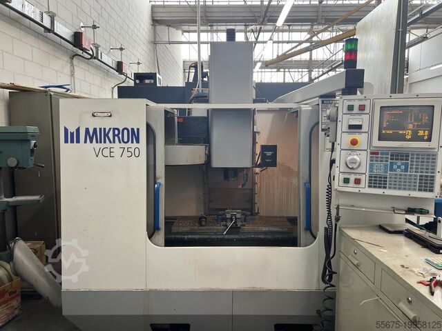 Обрабатывающий центр MIKRON VCE 750, полностью работоспособен. Дисковый сменщик инструментов на 20 позиций, шнековый транспортер и руководство. Машина соответствует стандартам CE.