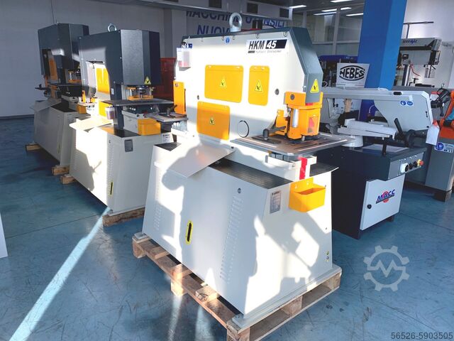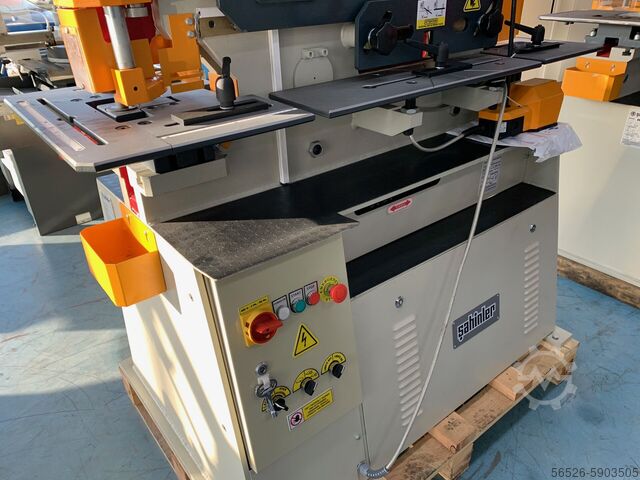 Комбинированные гидравлические ножницы с 5 рабочими станциями, станцией пробивки с механическим упором и регулируемым ходом поршня, вырубкой, ножницами плит, прутков и профилей с регулируемым упором с автоматическим контролем резки, ножной педалью, централизованной системой смазки, рабочим освещением.