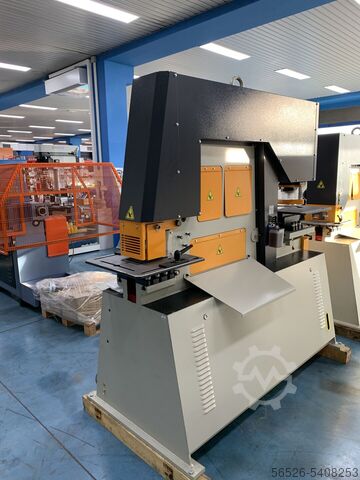 Комбинированные гидравлические ножницы с двумя независимыми поршнями, пробивной станцией с механическим упором и регулируемым ходом поршня, выемкой, ножницами плит, прутков и профилей с регулируемым упором с автоматическим управлением резанием, двойной педальной доской, централизованной системой смазки, рабочим освещением.