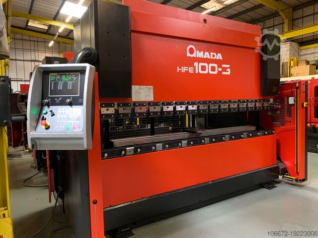 AMADA MODEL HFE 103-3 Гидравлический листогибочный пресс с нижним ходом, грузоподъемностью 100 тонн x длиной гибки 3000, в комплекте с ЧПУ OP 2000 7 AXIS,
