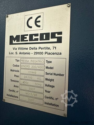 Синхронизированный гидравлический листогибочный пресс MECOS Mod. Синхрон 200/4000.