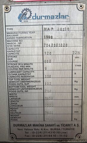 Гидравлический листогиб Durma тип HAP 30120 рабочая ширина 3100 мм максимальное усилие 120 тонн управление Elgo NC моторизованный задний упор с комплектом инструментов