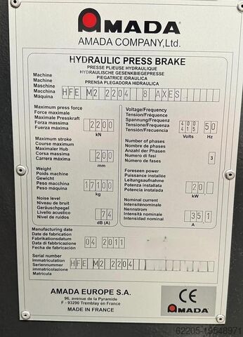Прекрасный листогибочный пресс AMADA с 8 осями, длина гибки 4 м и усилие гибки 220 тонн. Доступен сразу. Дополнительная информация по запросу.