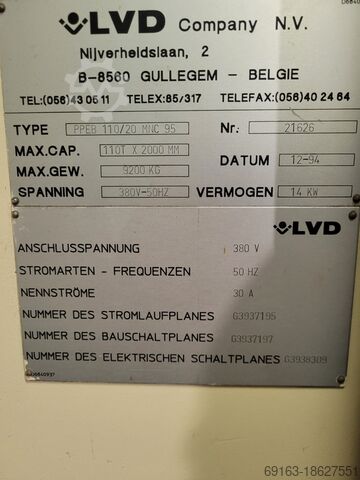Lvd PPEB 110/20 MNC 95 Листогибочный станок В хорошем состоянии Для этого есть инструкция. Вес машины: около 9480 кг Ширина: 3600 мм Длина: 2700 мм Roc R Nc Ifjv Er T Usnew Высота: 3000 мм