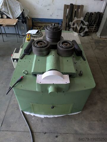 Вальцовочный станок для профилей 130 — модель Parmigiani, Италия. Электромеханическая машина. Диаметр выходных валов: 130 мм. Три ролика в пирамидальной схеме; верхний ролик с приводом через редуктор от электродвигателя мощностью 11 кВт. Боковые ролики для гибки с электроприводом мощностью 3 кВт. Диаметр верхнего ролика: 380 мм, диаметр боковых роликов: 350 мм. Панель управления обновлена: современная технология, электронные преобразователи, полный контроль мощности и плавная регулировка скорости. Электрические команды — на переносном пульте. Цифровая индикация положения гибочных роликов. Вес машины: 4,5 тонны. Установлена система безопасности и аварийного отключения. Машина работает с вертикальным расположением валов.