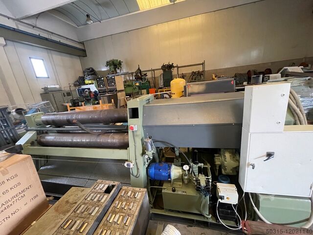 Каландр марки Sertom, гидравлический, длина 25000 мм с приглаживанием, 2 нижних ролика 300 мм, верхний ролик 318 мм, толщина 14 мм. Вращение 22 КВт, перемещение 5,5 КВт, спальное место 2,5 КВт. Габаритные размеры: 600x190x210(h)см Масса: 15,500 кг