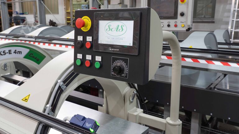Длинногибочный станок (HKS-E 4m Easy) с автоматическими ножницами, 5-дюймовым сенсорным дисплеем и простой ручной и автоматической гибкой с помощью простого программирования. С емкостью памяти до 40 программ.