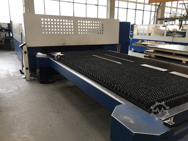 - Лазерная установка: CO2 лазер TLF 3200 turbo, блок охлаждения, функция ведения журнала- Автоматическое устройство смены паллет с продольным конвейером для мелких деталей/отходов- Приводы: Необслуживаемые трехфазные серводвигатели- Устройство быстрой смены режущей головки- Лазерная режущая головка с линзами 3,75 / 7,5" линзой- DIAS III емкостное управление высотой- Программируемая регулировка давления режущего газа- AutoLas Plus автоматическая регулировка положения фокуса- Регулировка мощности лазера- Позиционный лазерный диод- HI-LAS резка под высоким давлением- Быстрая обработка с SprintLas - ContourLas для получения небольших отверстий- Система датчиков плазмы PMS- Автоматическое обнаружение внешней кромки листа- Программируемые циклы питания- Microweld - Устройство распыления масла для безопасной обработки толстого листа- Автоматическое отключение- Освещение рабочей зоны- Встроенный сбор данных машины MDE