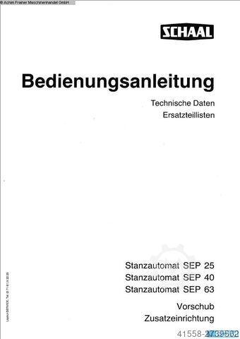 с оригинальной вальцовой подачей SCHAAL SWV 1E (BJ 92), бесступенчатая регулировка скорости, счетчик деталей с устройством предварительного выбора, отдельный распределительный шкаф, управление Unidor APS Mini, аварийная остановка, селекторный переключатель для настройки, однократного и непрерывного хода, регулировочный ход