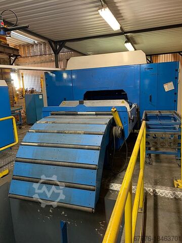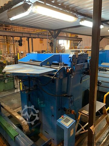 Установка, состоящая из тележки для рулонов, катушки, правильной машины, петлевой ямы с гидравликой. Передаточные столы, пробивной станок, удаление отходов, разгрузочный конвейер, устройство поворота заготовок, система штабелирования и система управления Siemens.